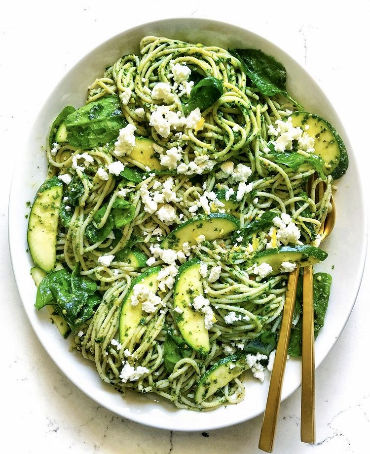 Zucchini & Pistachio Pasta with Pesto